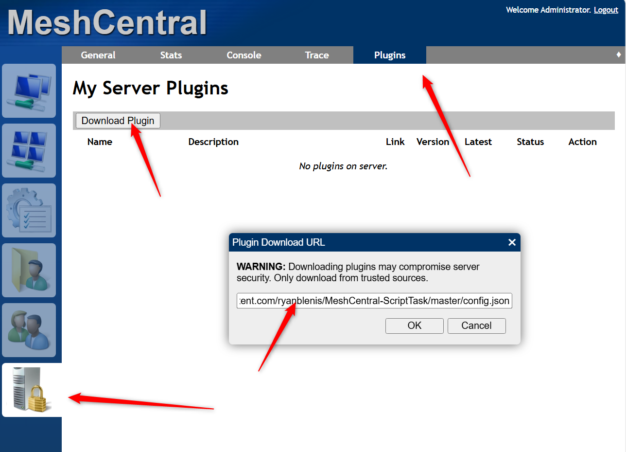 Load the TLS certificate for this domain from this https url. For example "https://127.0.0.1:123". This option is useful when used along with the "TlsOffload" option. When Important: Changes in config.json will NOT take effect until server is restarted. MeshCentral is not doing any TLS but has a reverse-proxy or TLS offload device doing this work in front of the server, you can use this to have MeshCentral load the certificate from the server in front of MeshCentral. This is needed because when agents connect, they need to be told that the certificate they saw upon connecting is the correct one. Using this, MeshCentral will know what certificate the agents are expected to see